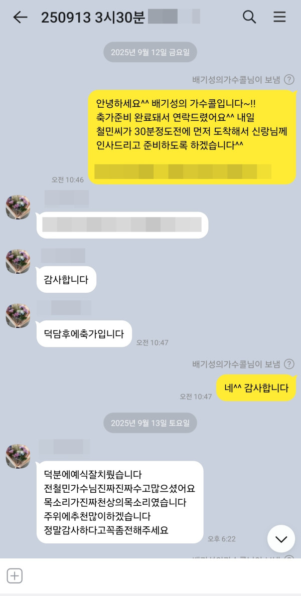 9월 13일 가수 전철민 결혼식축가 후기입니다^^