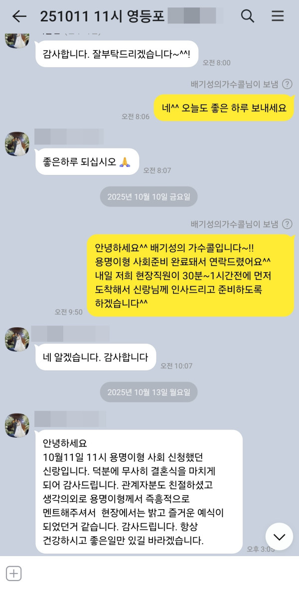 - 이전글10월 18일 가수 스윗소로우 결혼식축가 후기입니다^^ 25.10.24