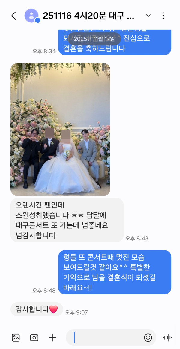 신부님께서 노을의 오래된 팬이었는데요 소원성취하셨다고 이렇게 감사 연락을 주셨어요