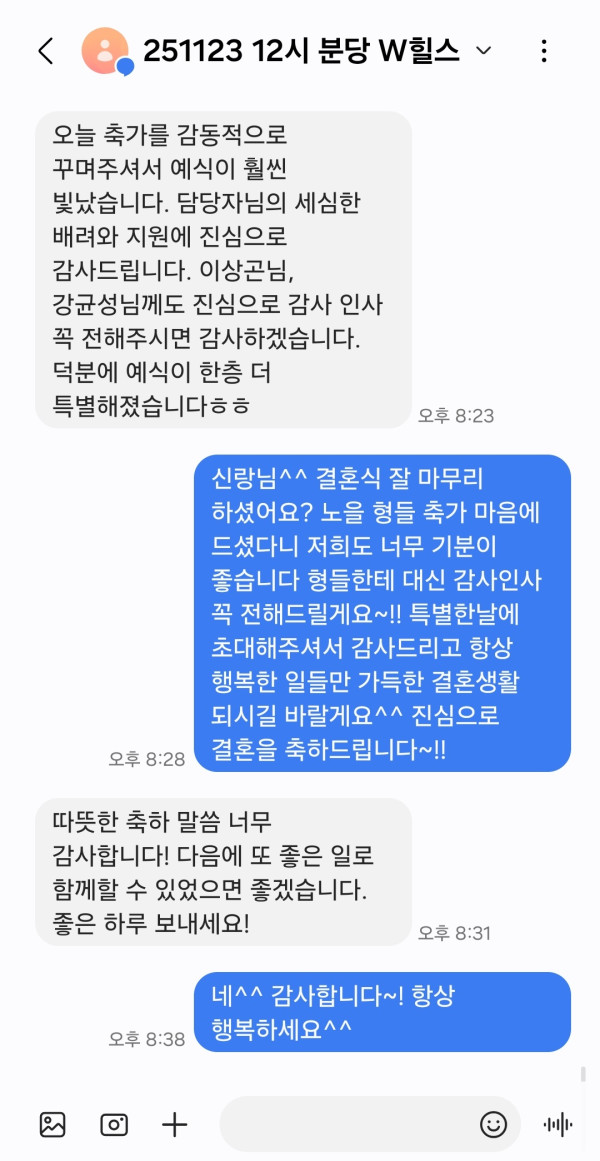 신랑님께서 덕분에 특별한 결혼식이 된것 같다고 감사하다고 이렇게 연락을 주셨어요