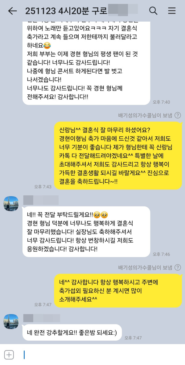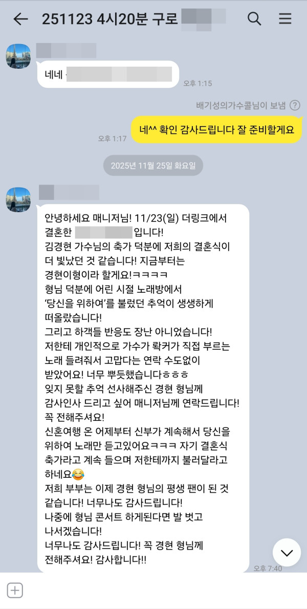 - 다음글11월 23일 가수 노을 강균성&이상곤 결혼식축가 후기입니다^^ 25.11.23