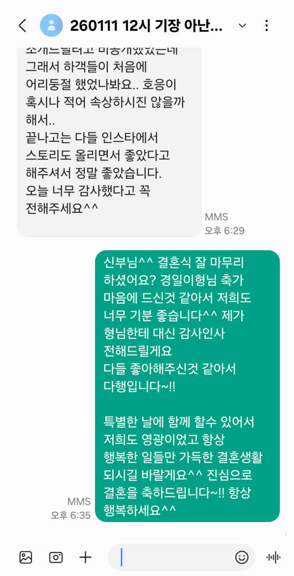 하객들 다 너무 좋아했다고 이렇게 연락을 주셨어요^^