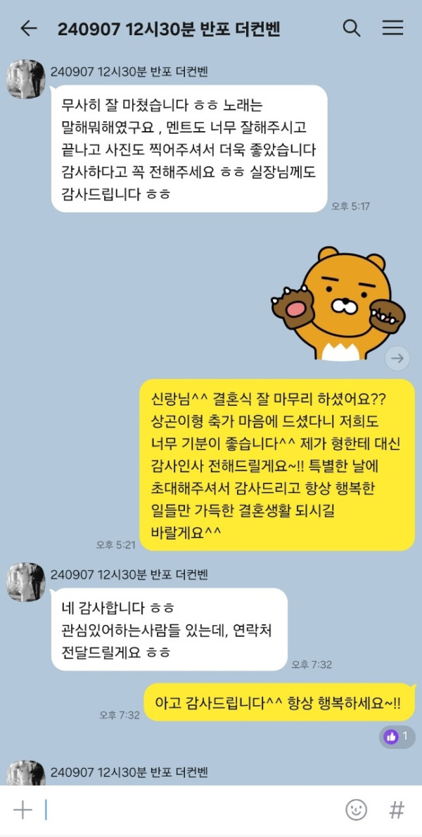 너무 만족하셨다고 끝나고 사진도 찍어주시고 최고였다고 이렇게 감사 연락을 주셨어요~!!