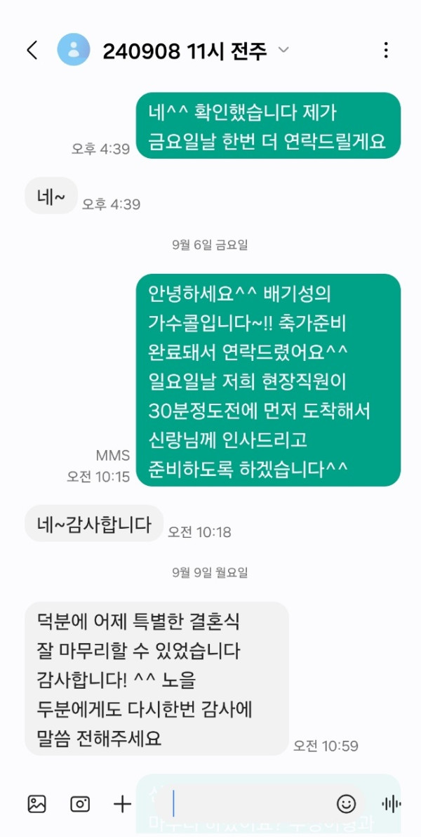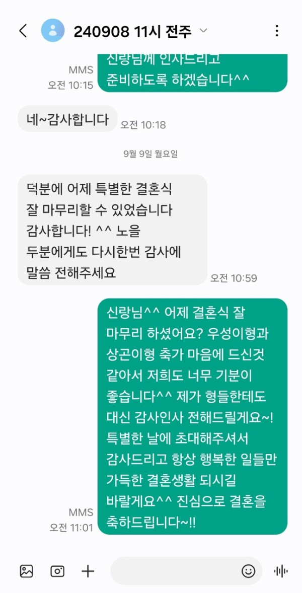 신랑님께서 축가 너무 마음에 드셨다고 감사하다고 이렇게 연락을 주셨어요~!!