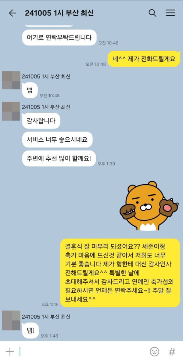 신랑님 지인분께서 신청을 해주셨는데요 너무 마음에 들었다고 이렇게 감사연락을 주셨어요~!!