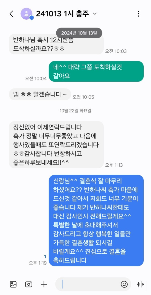 지난 10월 13일 충주 네스트웨딩홀에서 진행된 가수 반하나 결혼식축가 후기입니다^^