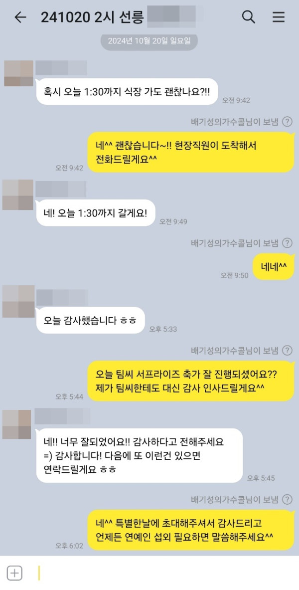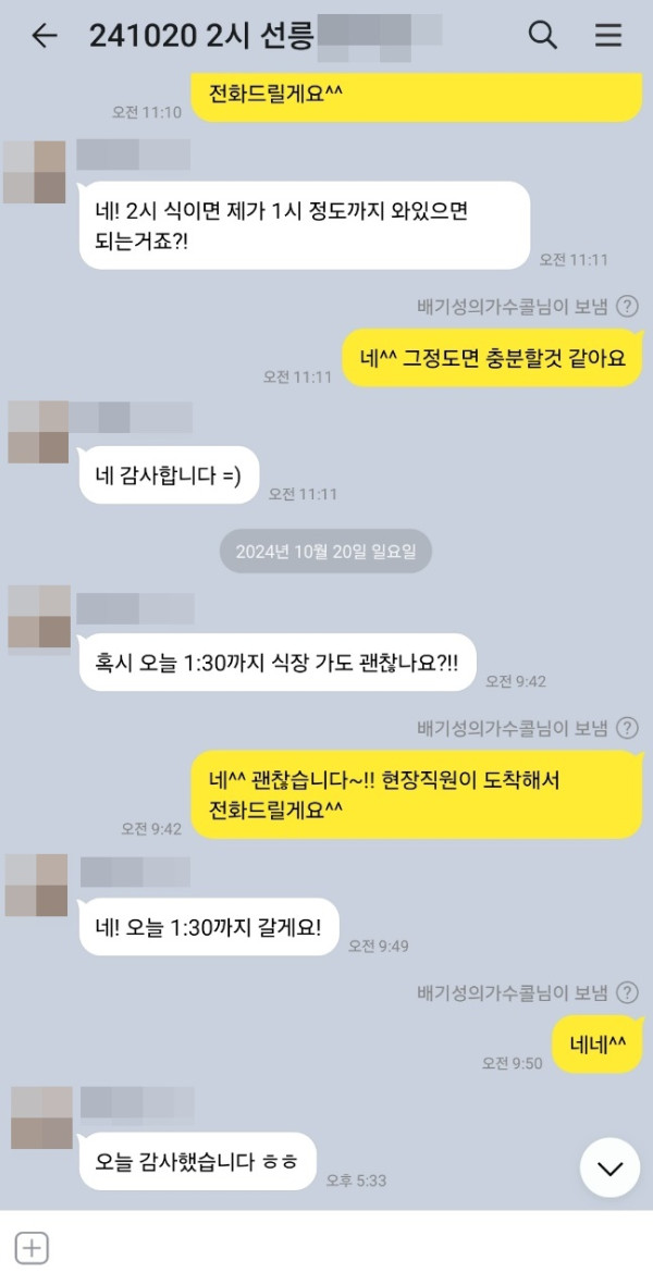 당일날 완벽하게 잘 진행돼서 감사하다고 이렇게 연락을 주셨어요~!!