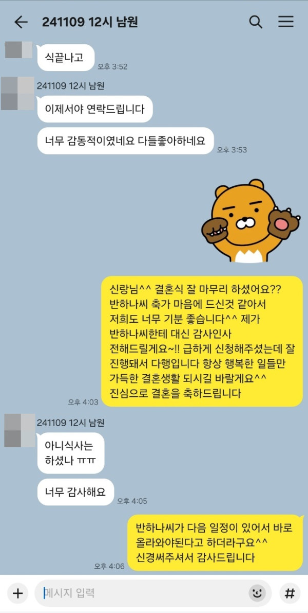 진행하게 됐는데 너무 좋았다고 이렇게 감사 연락을 주셨어요^^