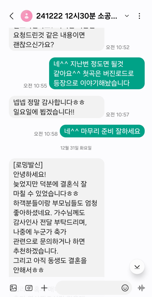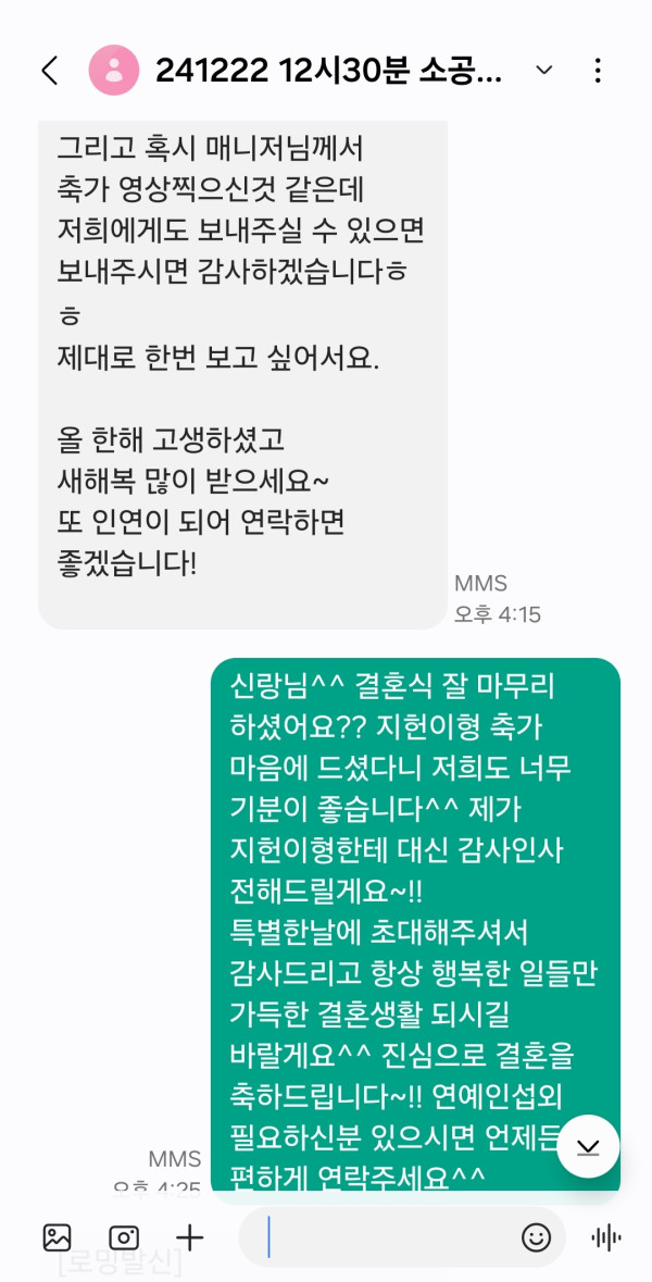 연락을 주셨어요^^ 가족과 지인 결혼식때도 연락주시겠다고 하셨어요^^