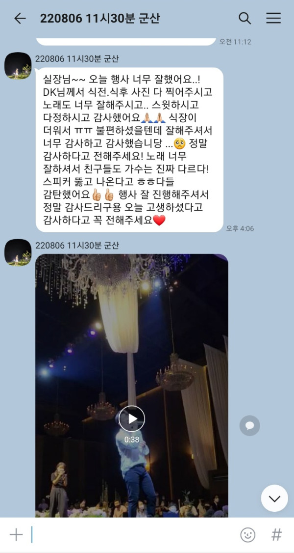 8월 6일 디셈버DK 결혼식축가 후기입니다^^