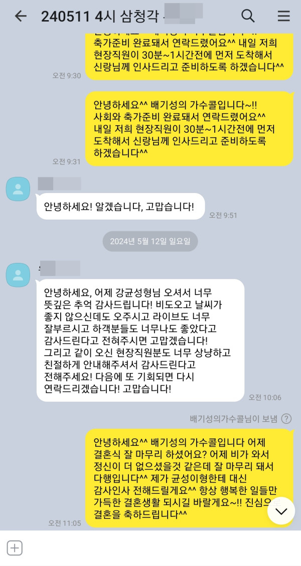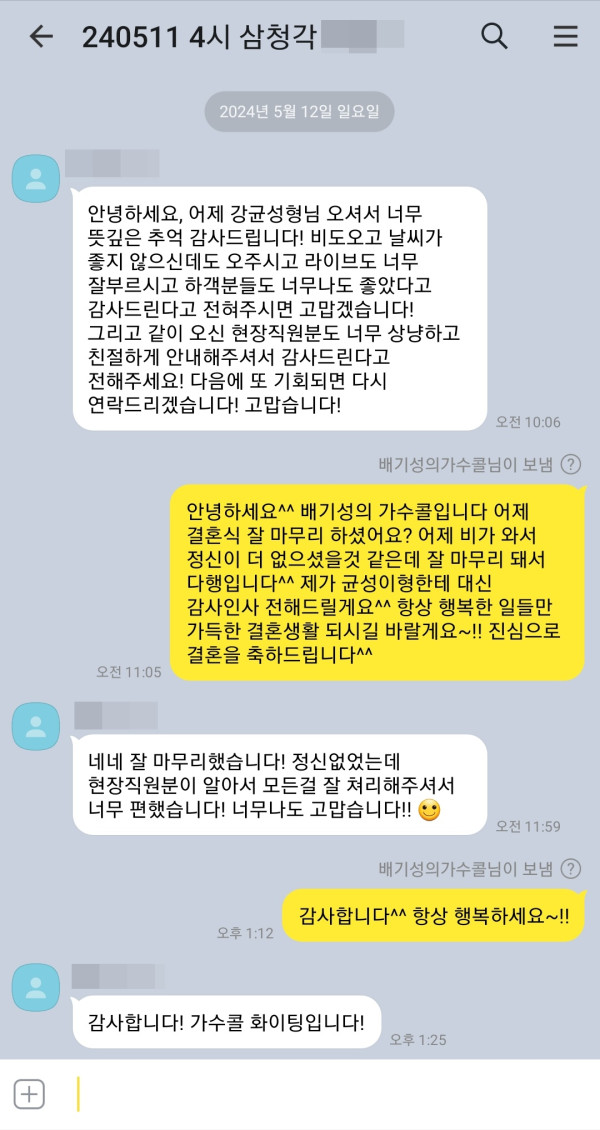 5월 11일 노을 강균성 결혼식축가 후기입니다^^