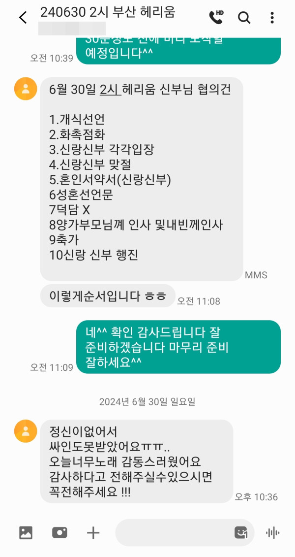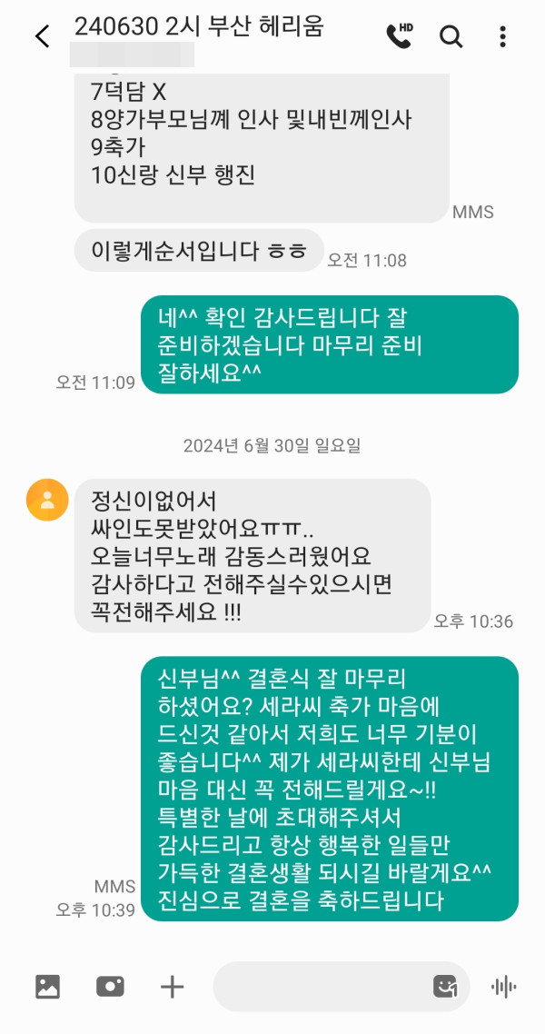 축가 너무 좋으셨다고 감사하다고 이렇게 연락을 주셨는데요^^
