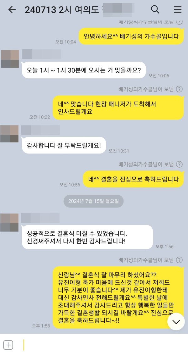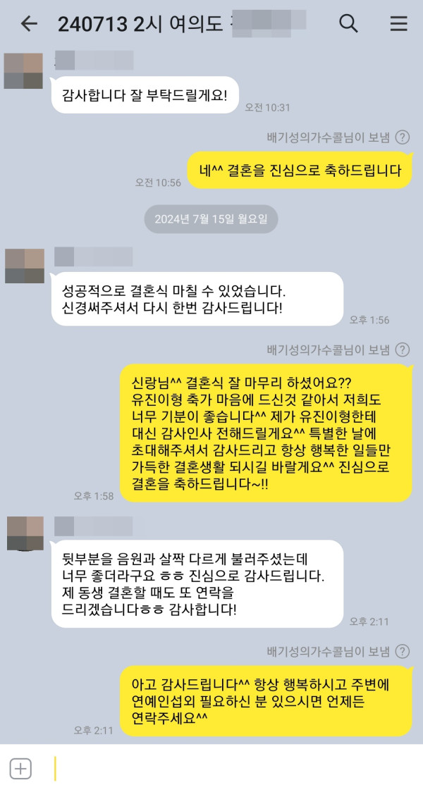 7월 13일 가수 플라워 고유진 결혼식축가 후기입니다^^