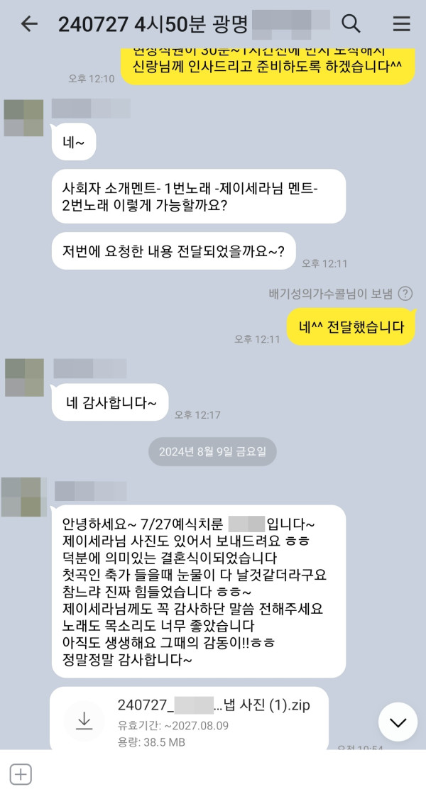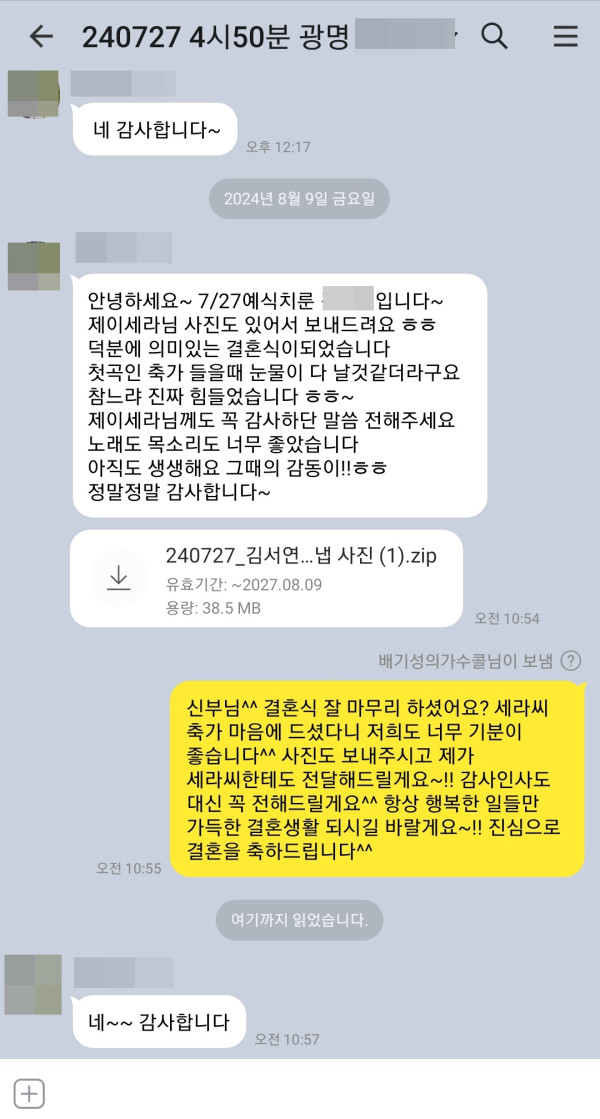 7월 27일 가수 제이세라 결혼식축가 후기입니다^^ > 고객후기 | 배기성의 가수콜