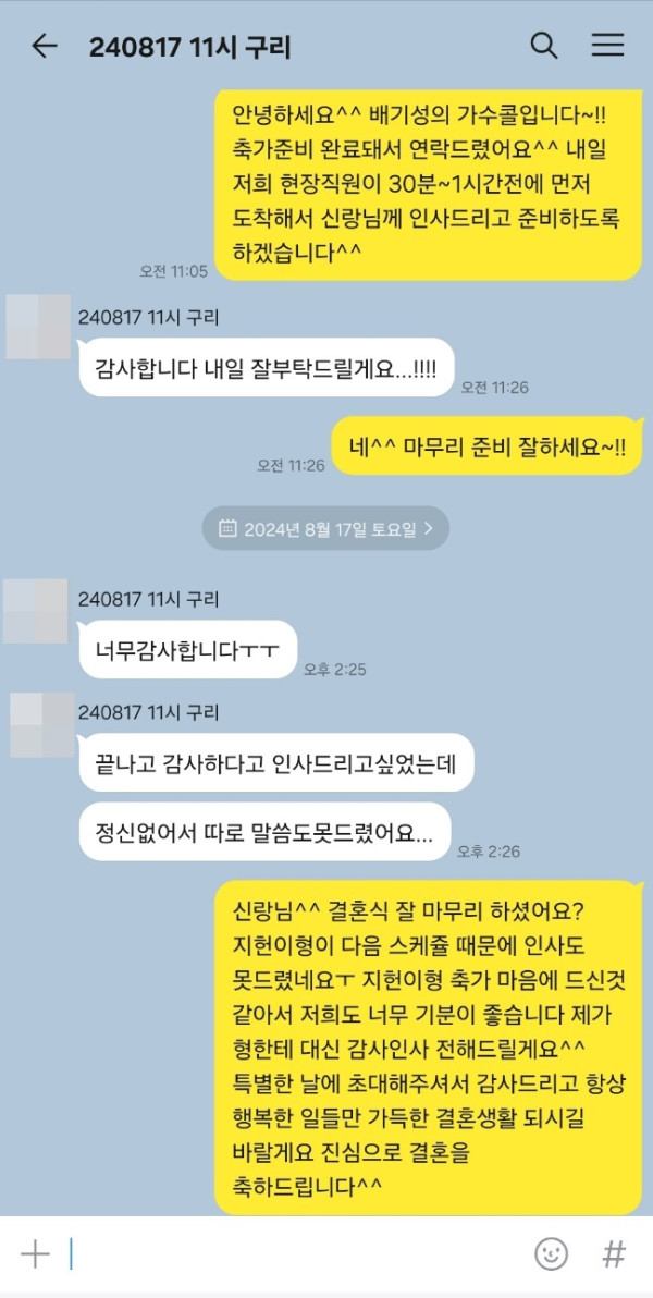 너무 좋았다고 너무 감사하다고 이렇게 연락을 주셨어요^^