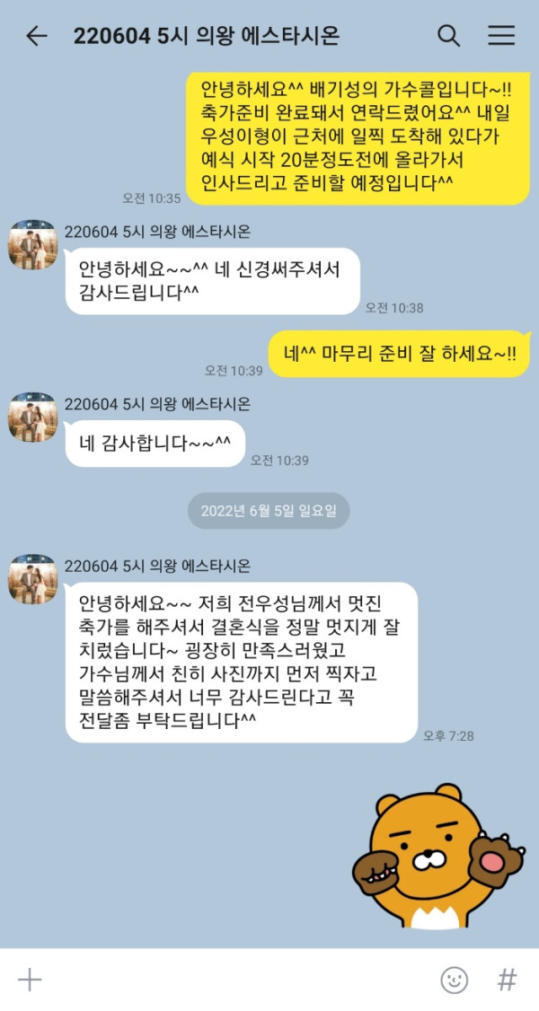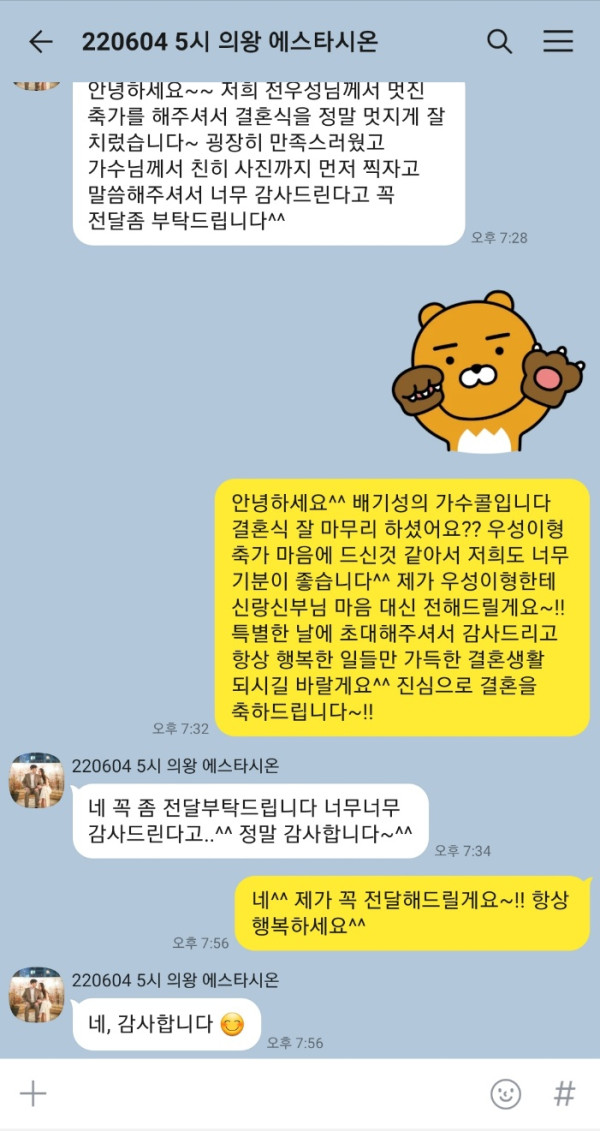 사진촬영까지 너무 감사드린다고 이렇게 연락을 주셨어요^^