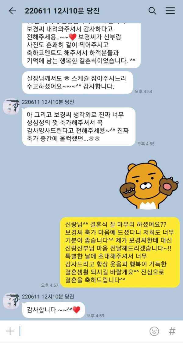 감사 인사 꼭 전해달라고 이렇게 연락을 주셨어요~!!