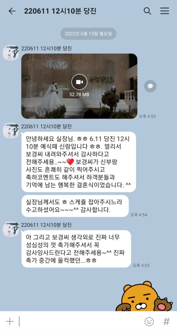 신랑님께서 축가 너무 성의있게 잘 해주셨다고