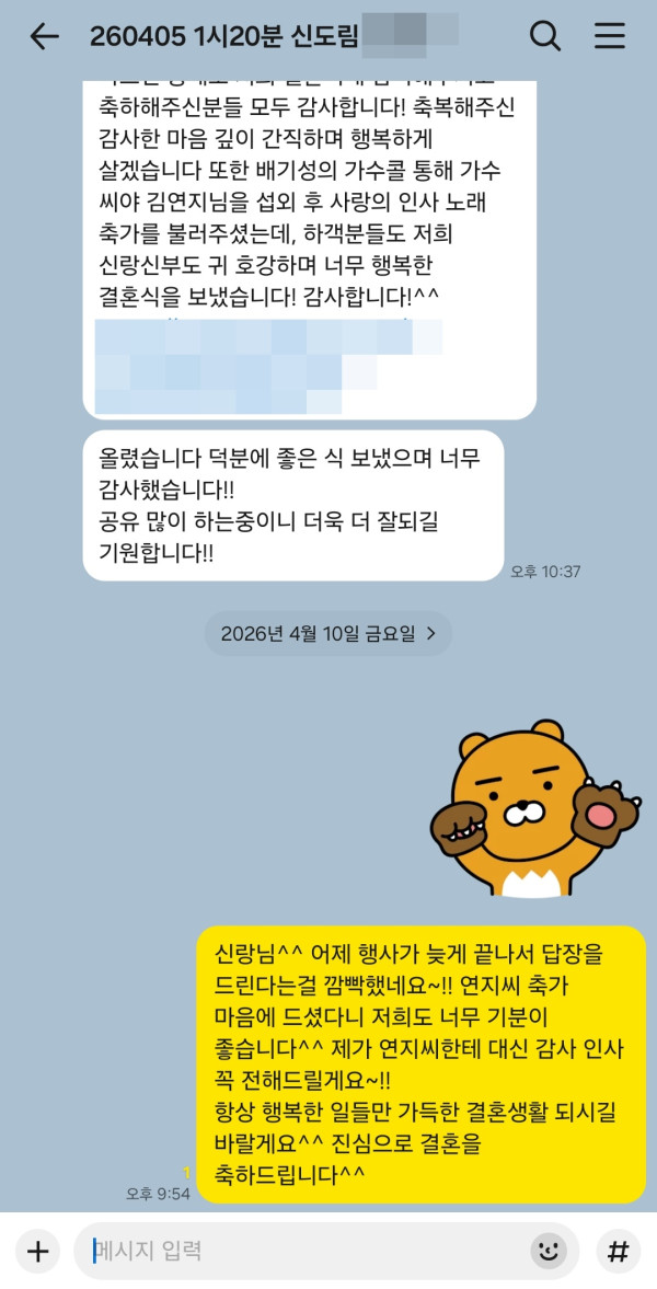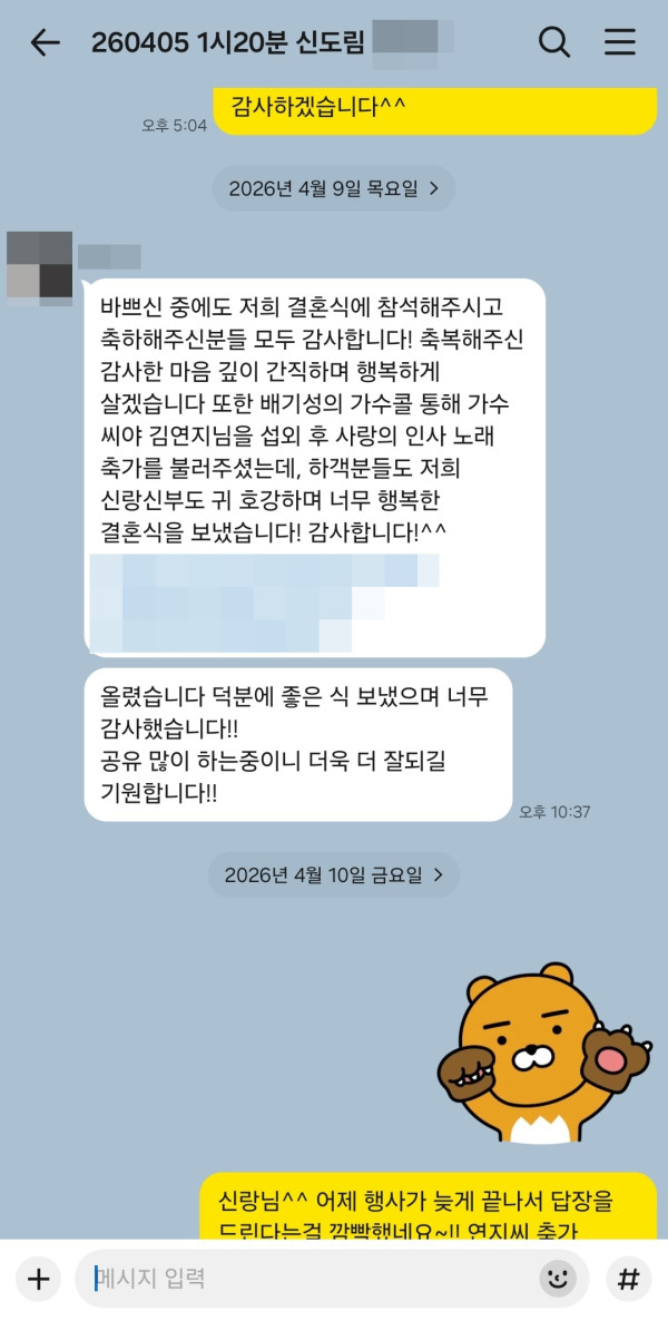 신랑님께서 너무 좋으셨다고 감사드린다고 이렇게 연락을 주셨는데요~!!