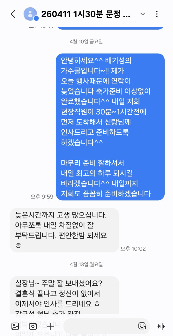 - 이전글4월 11일 가수 홍대광 결혼식축가 후기입니다^^ 26.04.13
