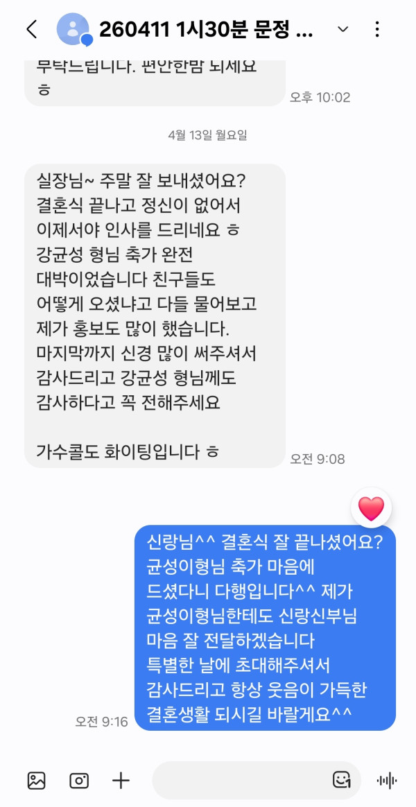 신랑님께서 이렇게 감사인사를 전해주셨어요~!!